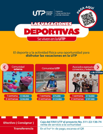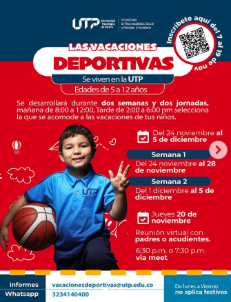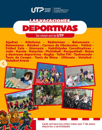 El programa cuenta con la orientación de profesionales en deporte y recreación, quienes lideran experiencias diseñadas para fortalecer habilidades motrices, incentivar el trabajo en equipo y promover estilos de vida saludables. Con esta iniciativa, la UTP reafirma su compromiso con el bienestar y el desarrollo integral de la comunidad infantil y juvenil.