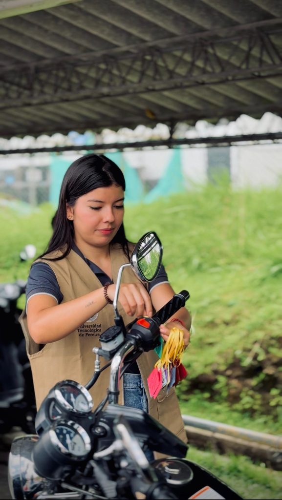 En los parqueaderos de la UTP la cultura ciudadana se mueve sobre ruedas, los estudiantes del programa RISARALDA PROFESIONAL como parte del servicio social llevaron mensajes a los motociclistas sobre el cuidado por la vida ¨La prisa no vale más que tu vida.