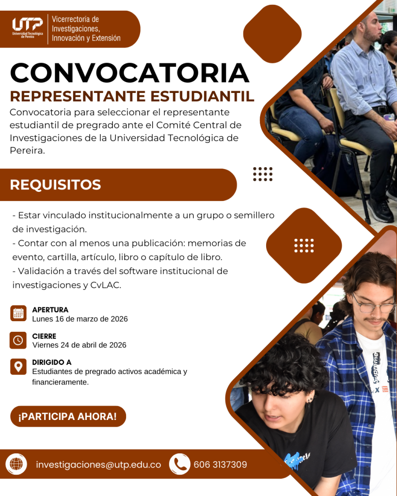 - Estudiantes de pregrado de la Universidad Tecnológica de Pereira que a la fecha de apertura de la convocatoria se encuentren activos financiera y académicamente.