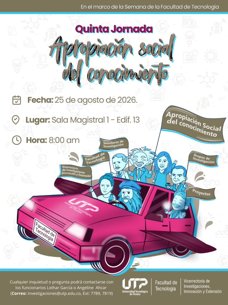 - Grupos de Investigación: Los docentes, estudiantes y egresados vinculados a los grupos de investigación de la Facultad de Tecnología de la Universidad Tecnológica de Pereira podrán participar en la jornada con: