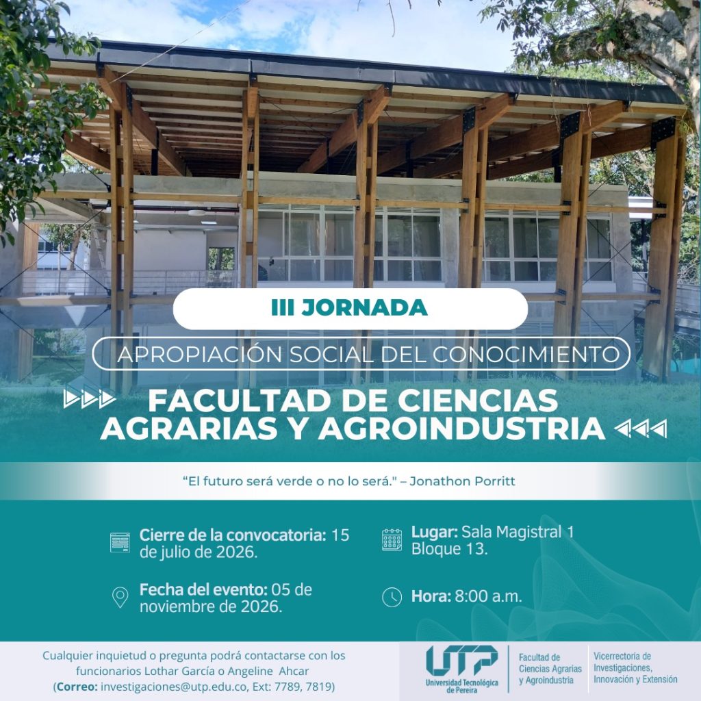LA VICERRECTORÍA DE INVESTIGACIONES, INNOVACIÓN Y EXTENSIÓN Y LA FACULTAD DE CIENCIAS AGRARIAS Y AGROINDUSTRIA DE LA UNIVERSIDAD TECNOLÓGICA DE PEREIRA